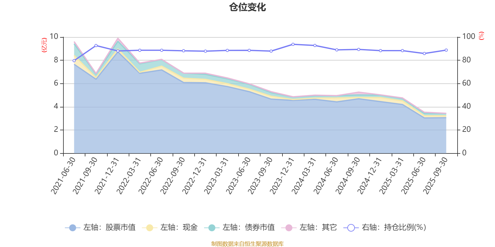 据定期报告数据统计,近三年平均股票仓位为89.08%,同类平均为72.18%。2023年末基金达到93.76%的最高仓位,2021年上半年末最低,为79.69%。
