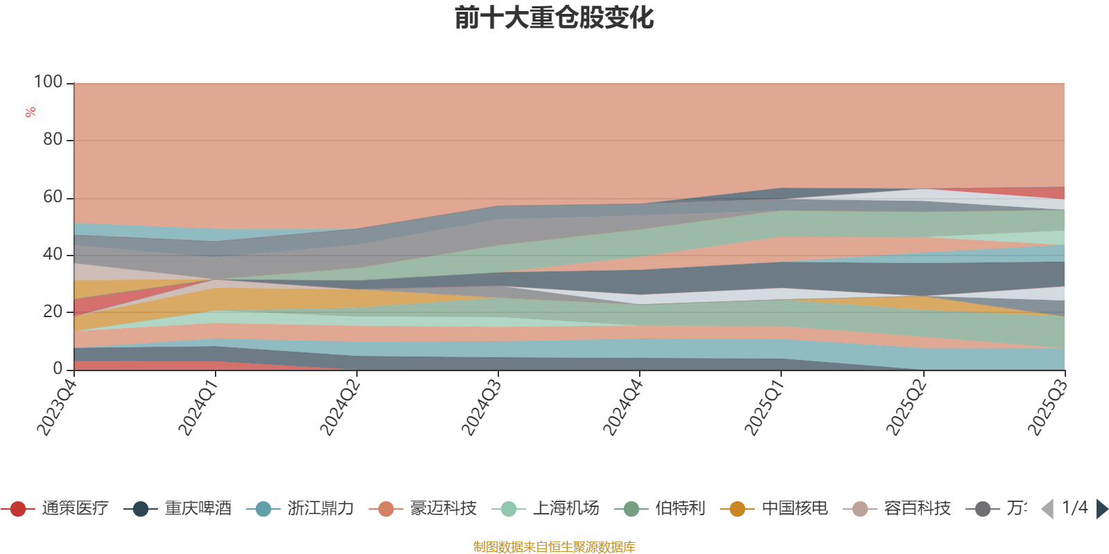 截至2025年三季度末,基金十大重仓股分别是伯特利、顺丰控股、浙江鼎力、安井食品、扬杰科技、迈瑞医疗、海尔智家、爱博医疗、华鲁恒升、国电电力。