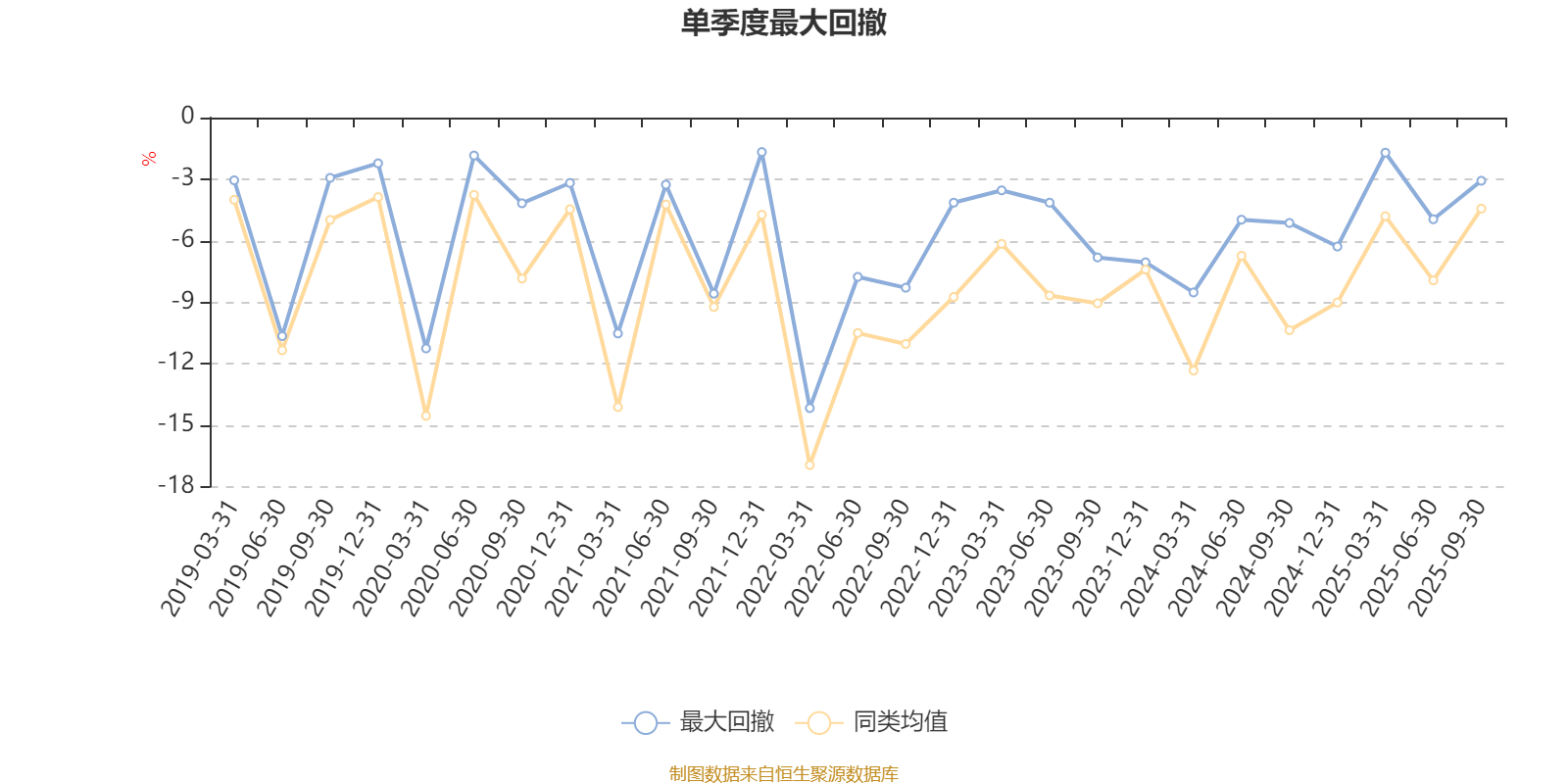 截至10月24日,基金近三年最大回撤为20.72%,同类可比基金排名35/119。单季度最大回撤出现在2022年一季度,为14.17%。