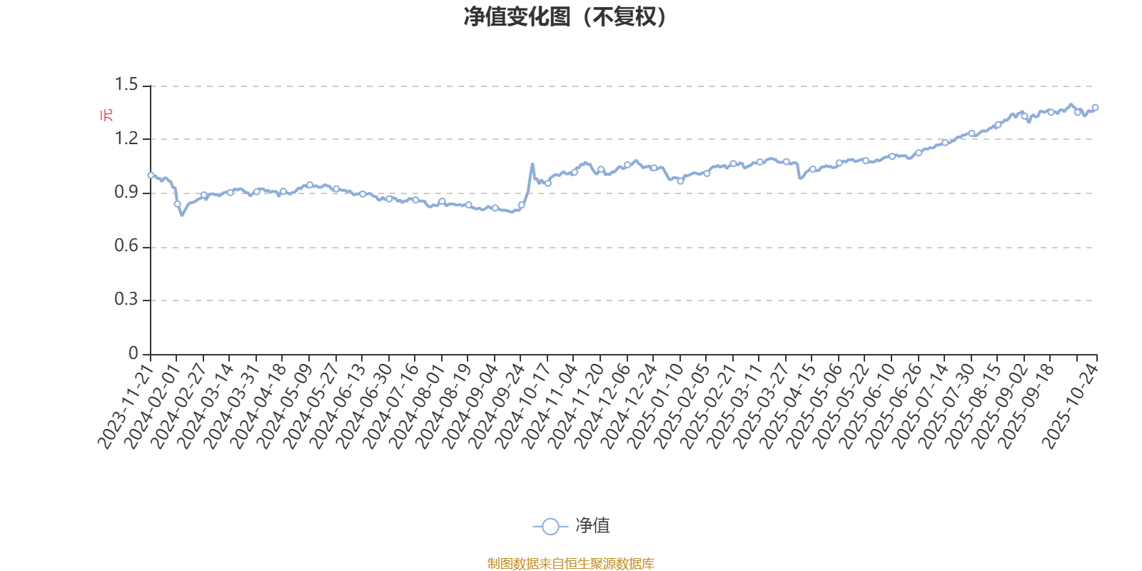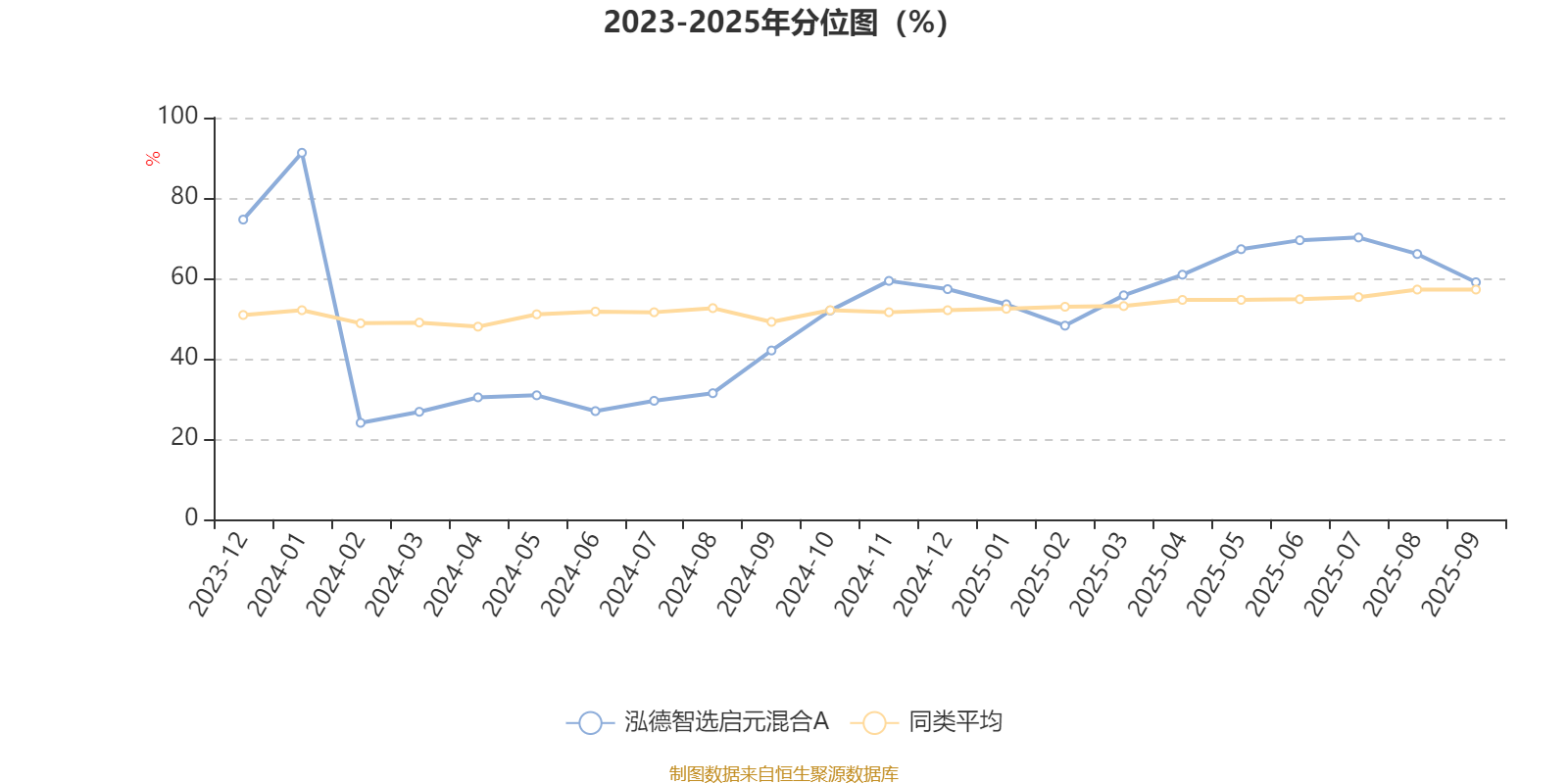 通过所选区间该基金净值增长率分位图,可以观察该基金与同类基金业绩比较情况。图为坐标原点到区间内某时点的净值增长率在同类基金中的分位数。