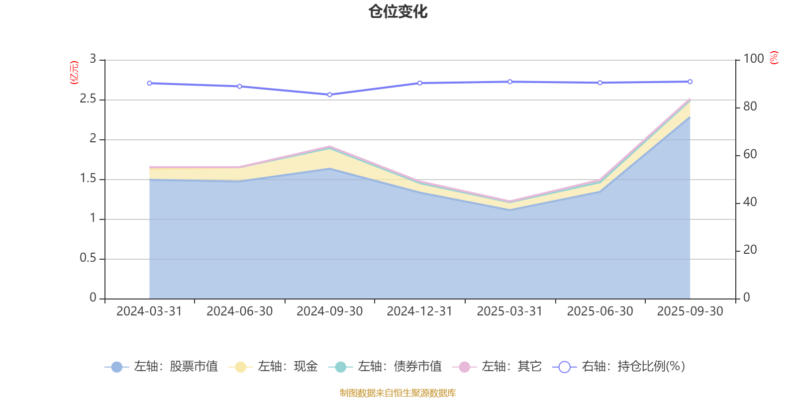 据定期报告数据统计,成立以来平均股票仓位为89.5%,同类平均为85.47%。2025年三季度末基金达到90.81%的最高仓位,2024年三季度末最低,为85.36%。
