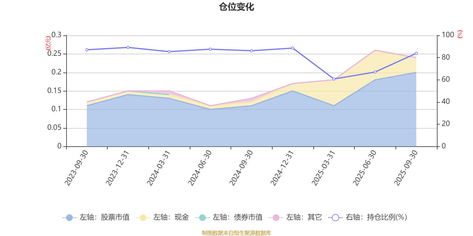 据定期报告数据统计,成立以来平均股票仓位为81.74%,同类平均为86.94%。2023年末基金达到89.2%的最高仓位,2025年一季度末最低,为60.77%。