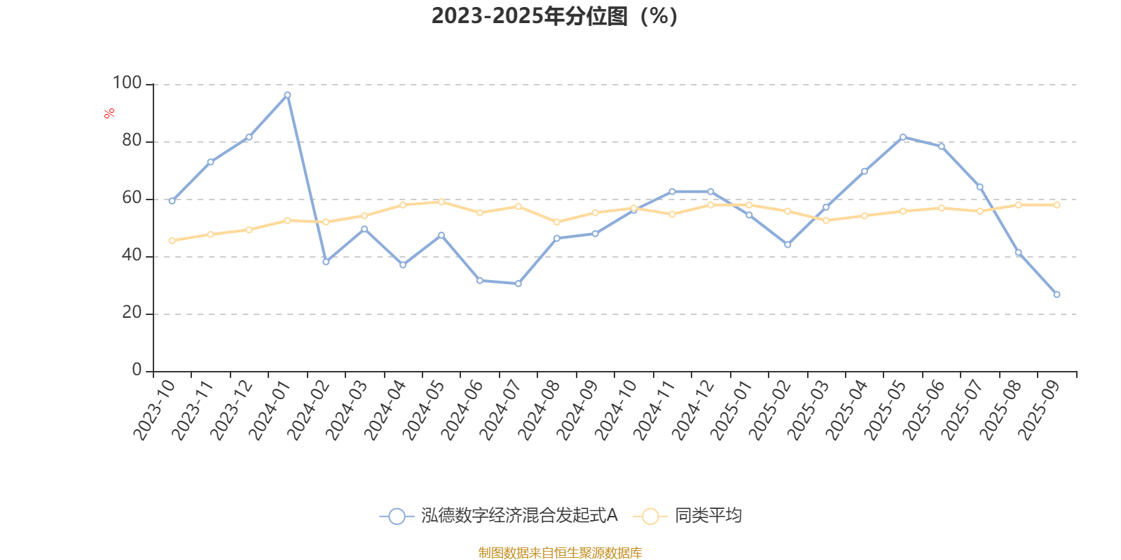 通过所选区间该基金净值增长率分位图,可以观察该基金与同类基金业绩比较情况。图为坐标原点到区间内某时点的净值增长率在同类基金中的分位数。