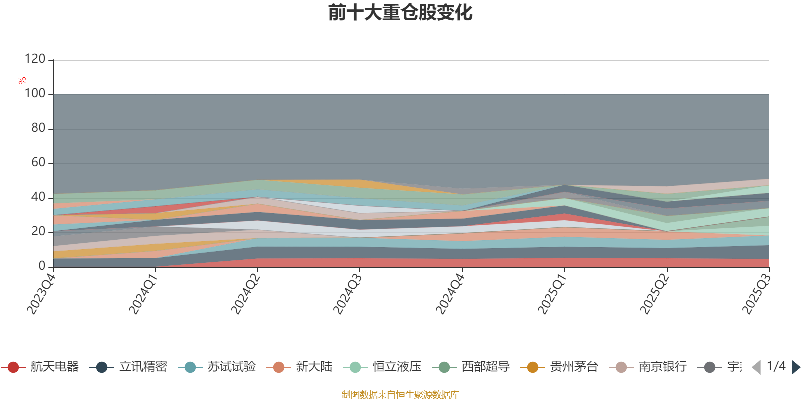 截至2025年三季度末,基金十大重仓股分别是立讯精密、苏试试验、恒立液压、西部超导、航宇科技、三一重工、航天电器、蓝思科技、恒瑞医药、江苏银行。
