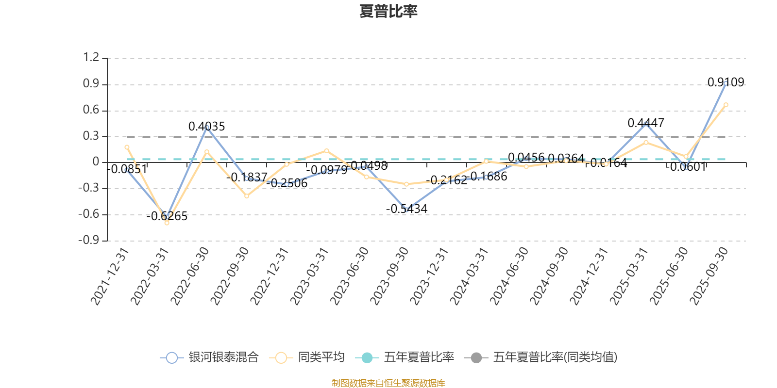 截至9月30日,基金近三年夏普比率为-0.0626,位于同类可比基金113/119。
