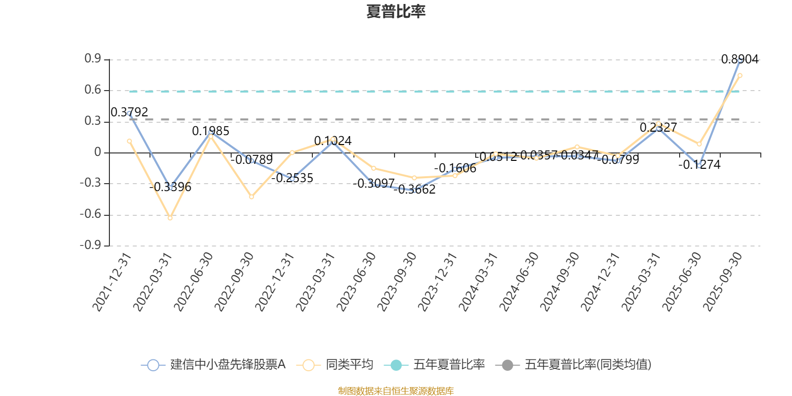 截至9月30日,基金近三年夏普比率为0.0625,位于同类可比基金146/156。