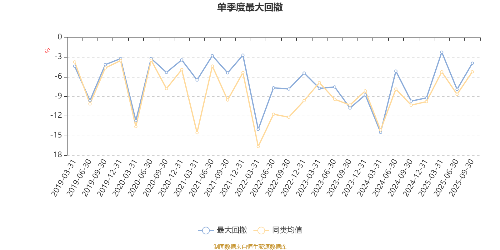 截至10月24日,基金近三年最大回撤为34.22%,同类可比基金排名686/1283。单季度最大回撤出现在2024年一季度,为14.51%。