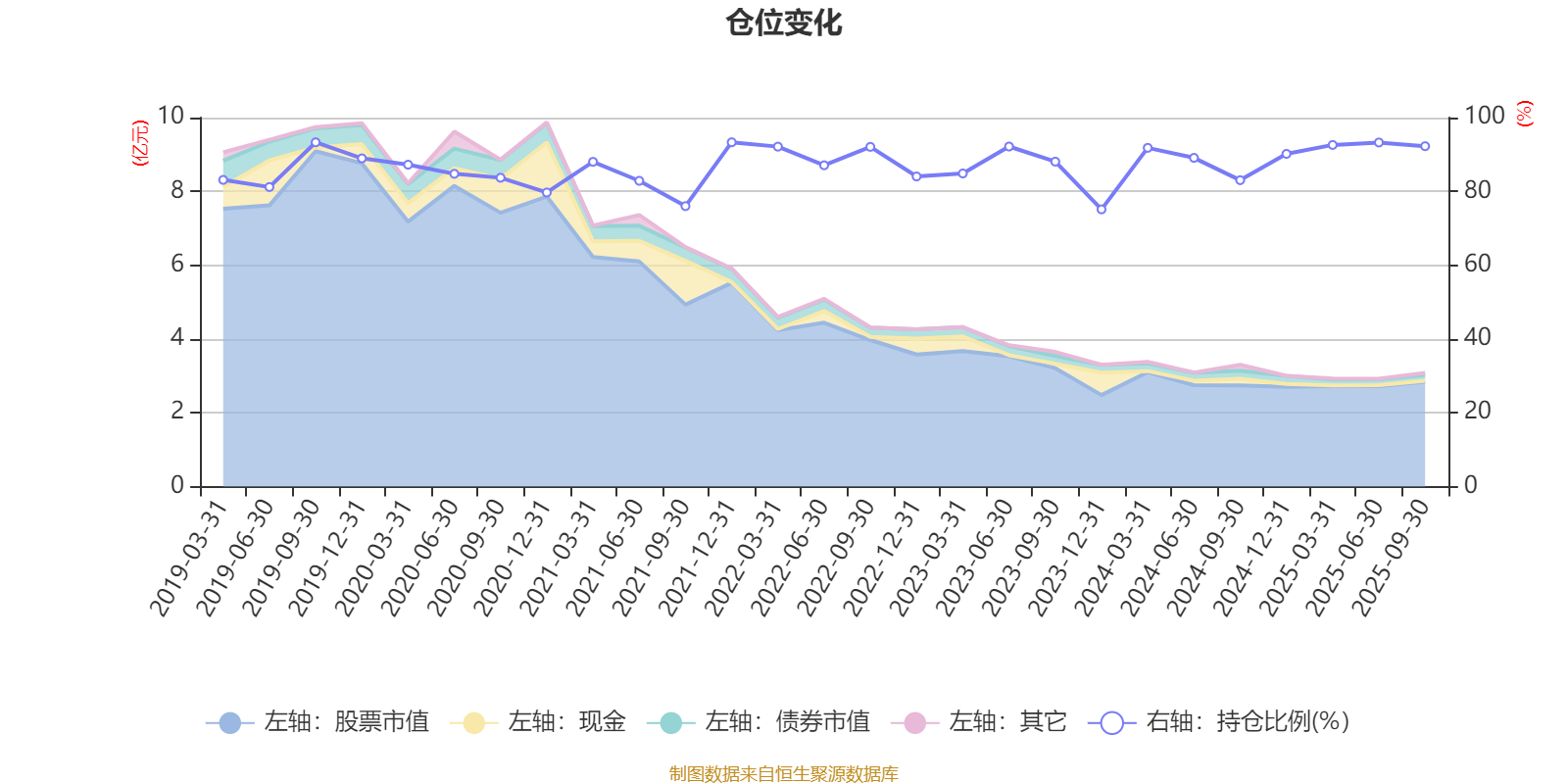据定期报告数据统计,近三年平均股票仓位为88.04%,同类平均为72.18%。2021年末基金达到93.31%的最高仓位,2023年末最低,为75.13%。