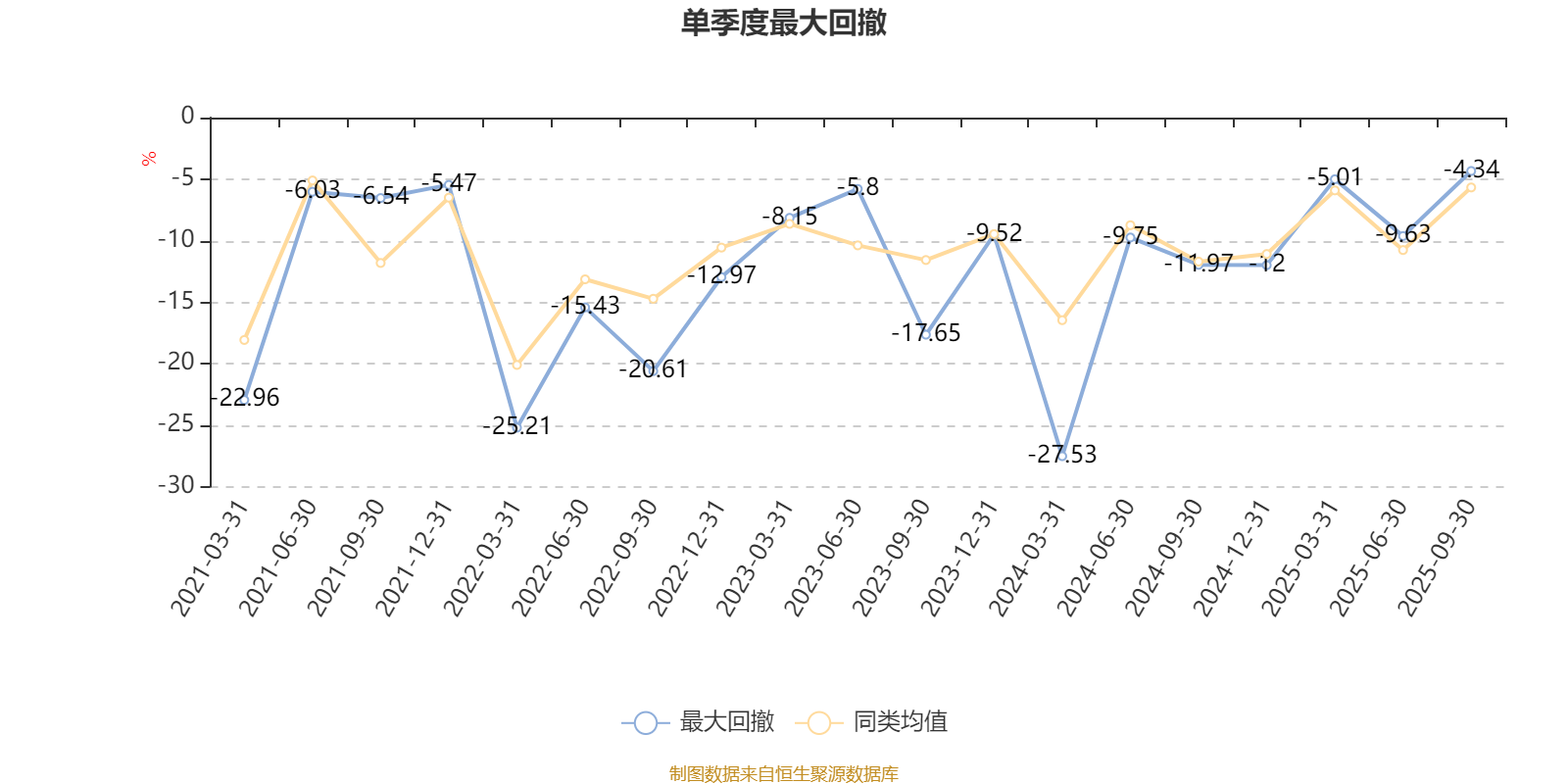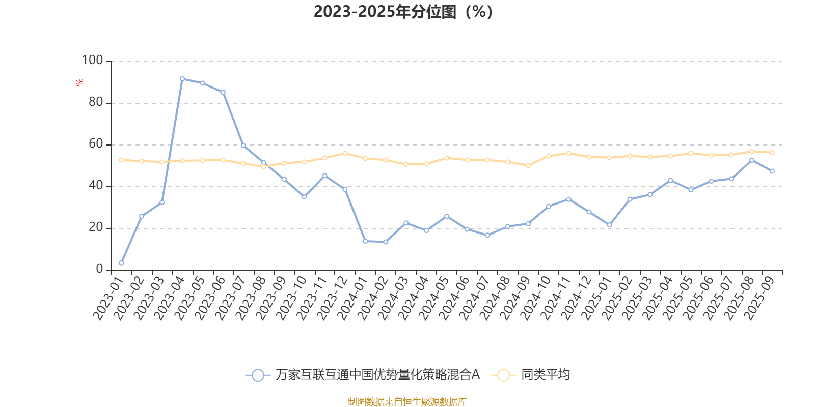 通过所选区间该基金净值增长率分位图,可以观察该基金与同类基金业绩比较情况。图为坐标原点到区间内某时点的净值增长率在同类基金中的分位数。