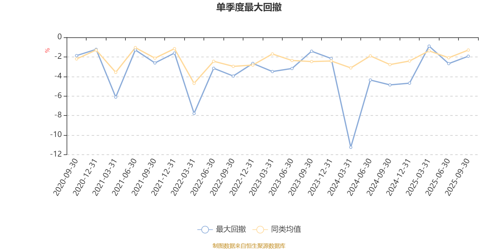 截至10月24日,基金近三年最大回撤为11.26%,同类可比基金排名447/552。单季度最大回撤出现在2024年一季度,为11.26%。