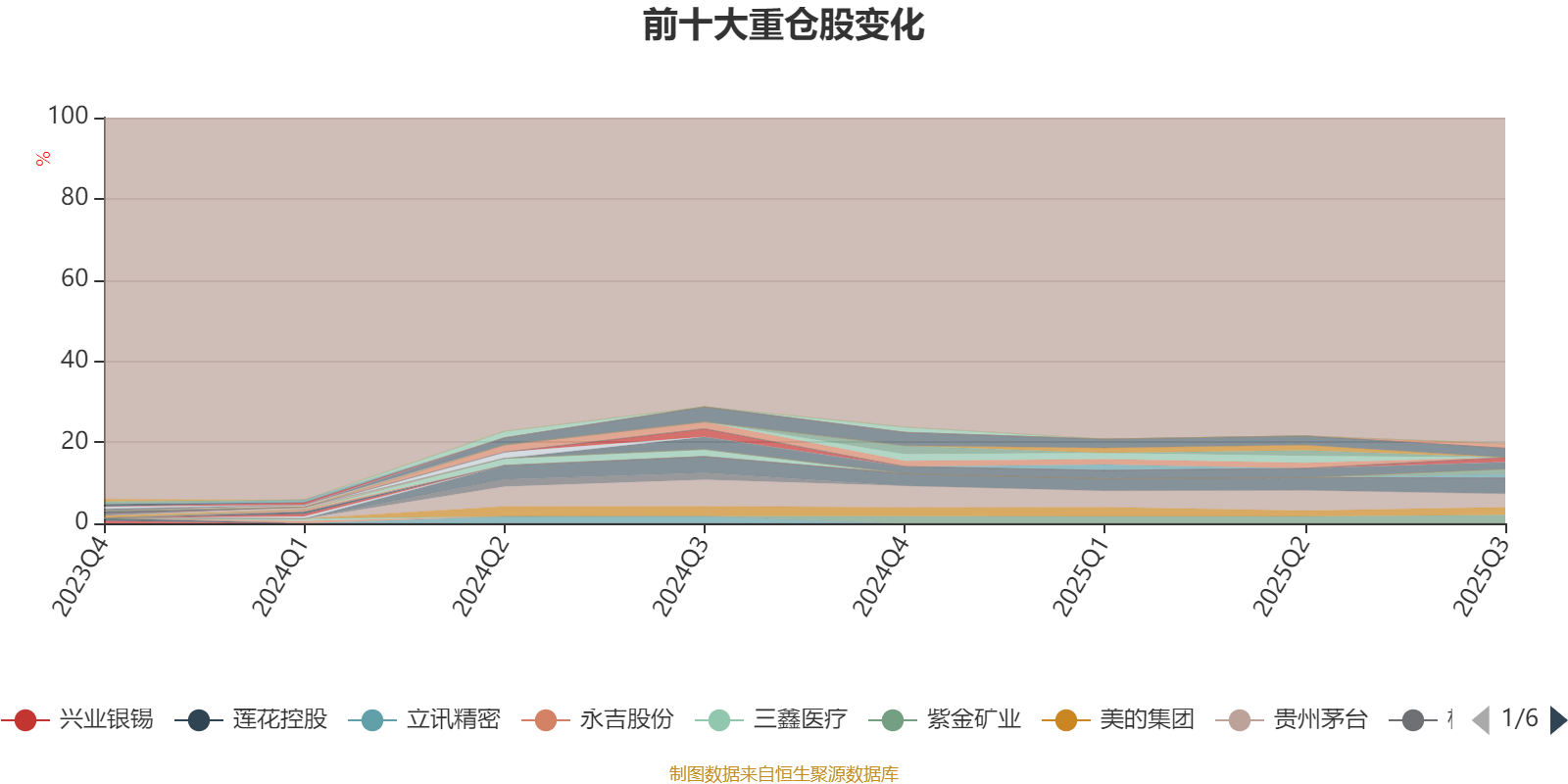 截至2025年三季度末,基金十大重仓股分别是宁德时代、贵州茅台、中国平安、紫金矿业、美的集团、招商银行、兴业银行、江苏银行、中兴通讯、东方财富。