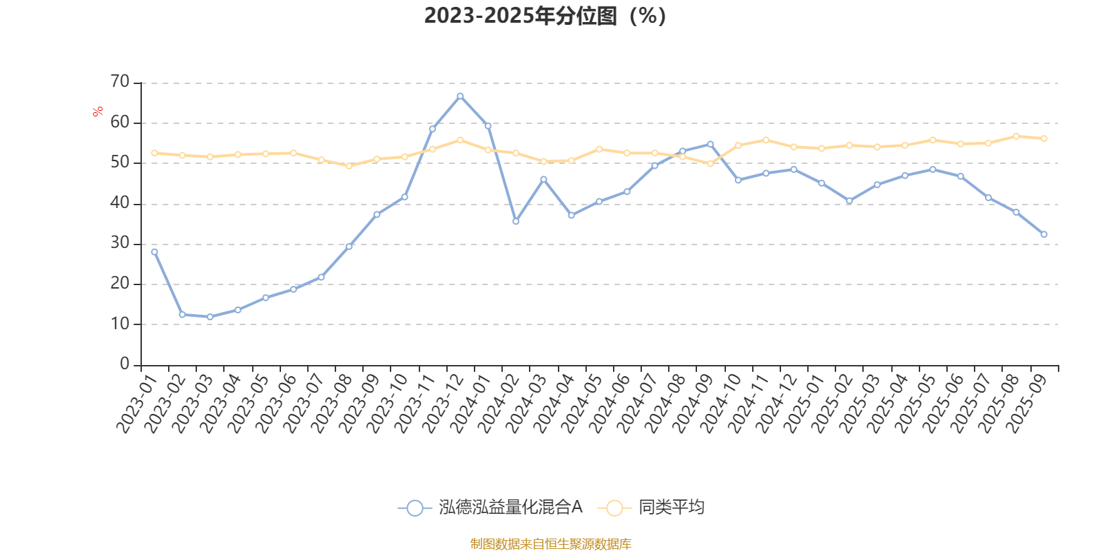通过所选区间该基金净值增长率分位图,可以观察该基金与同类基金业绩比较情况。图为坐标原点到区间内某时点的净值增长率在同类基金中的分位数。