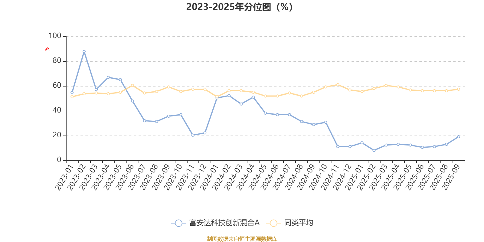通过所选区间该基金净值增长率分位图,可以观察该基金与同类基金业绩比较情况。图为坐标原点到区间内某时点的净值增长率在同类基金中的分位数。