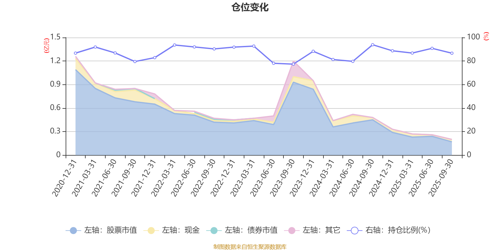 据定期报告数据统计,近三年平均股票仓位为86.34%,同类平均为86.72%。2024年三季度末基金达到93.86%的最高仓位,2023年三季度末最低,为77.38%。