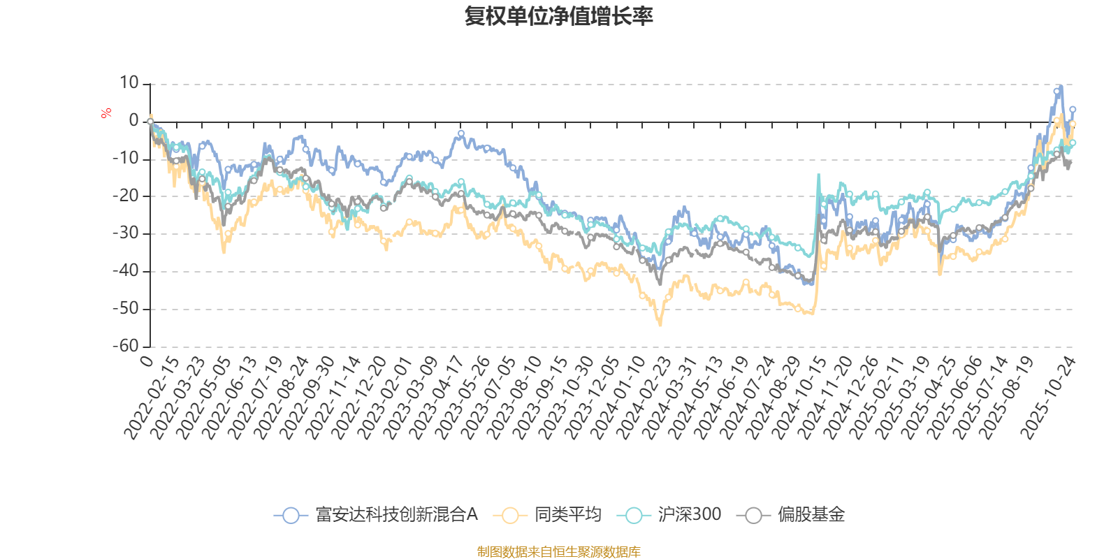 截至10月24日,富安达科技创新混合A近三个月复权单位净值增长率为30.92%,位于同类可比基金141/229;近半年复权单位净值增长率为50.65%,位于同类可比基金108/229;近一年复权单位净值增长率为31.32%,位于同类可比基金188/213;近三年复权单位净值增长率为13.49%,位于同类可比基金137/158。