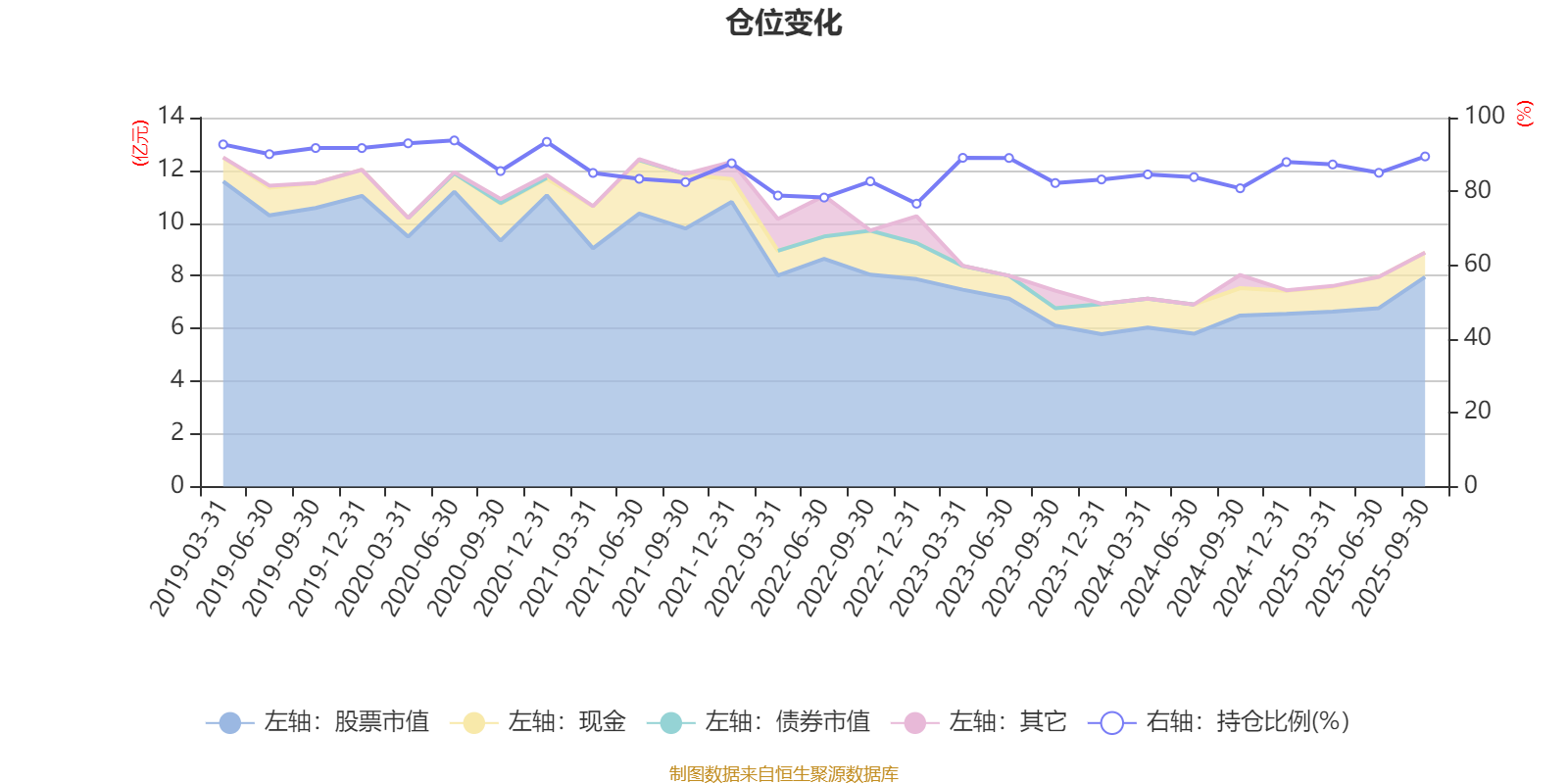 据定期报告数据统计,近三年平均股票仓位为84.95%,同类平均为85.84%。2020年上半年末基金达到93.81%的最高仓位,2022年末最低,为76.67%。