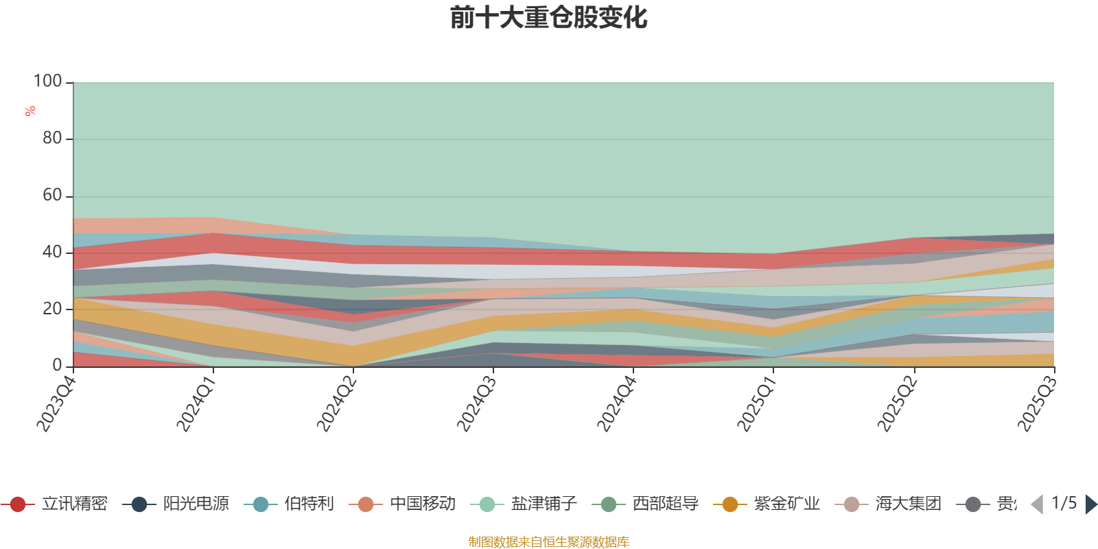 截至2025年三季度末,基金十大重仓股分别是甘李药业、恺英网络、益方生物、寒武纪、科达利、紫金矿业、海大集团、科博达、圆通速递、广发证券。