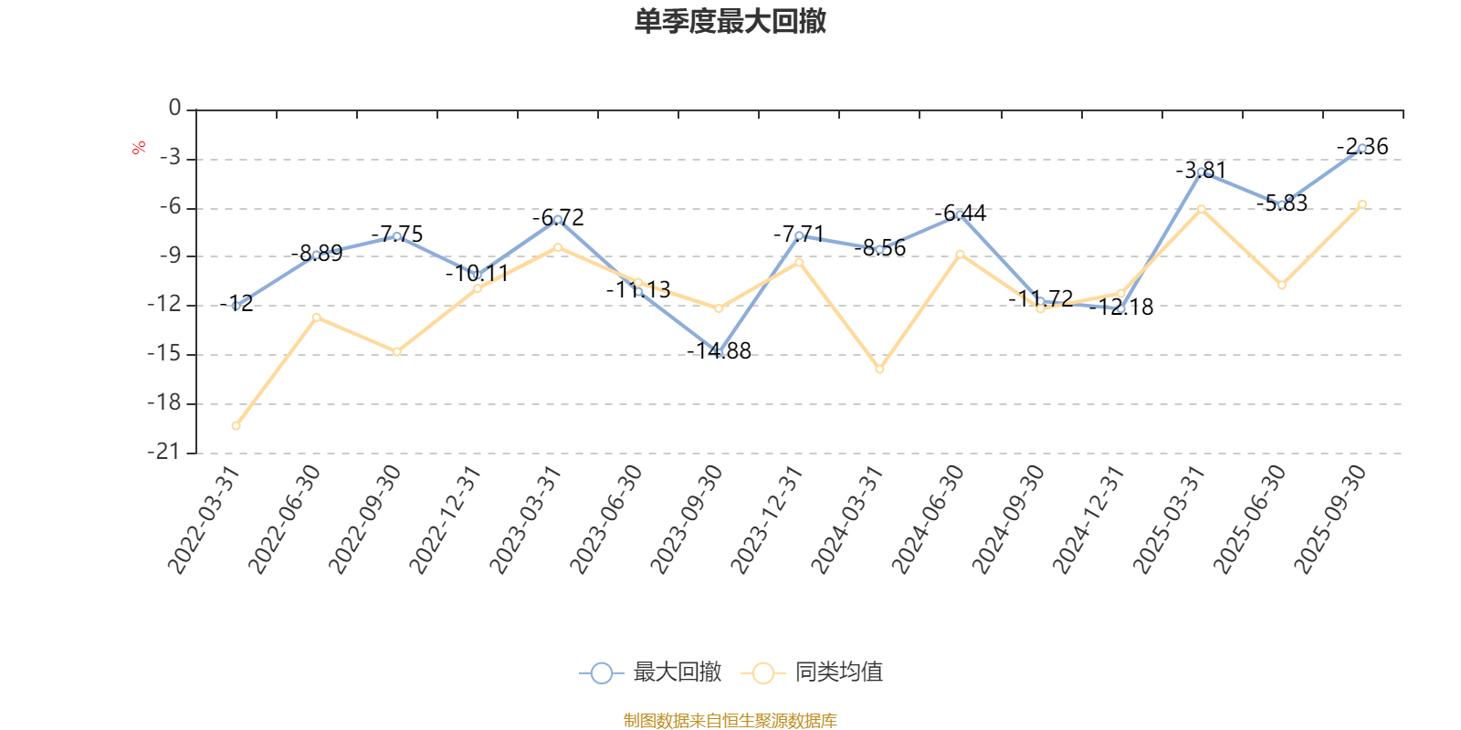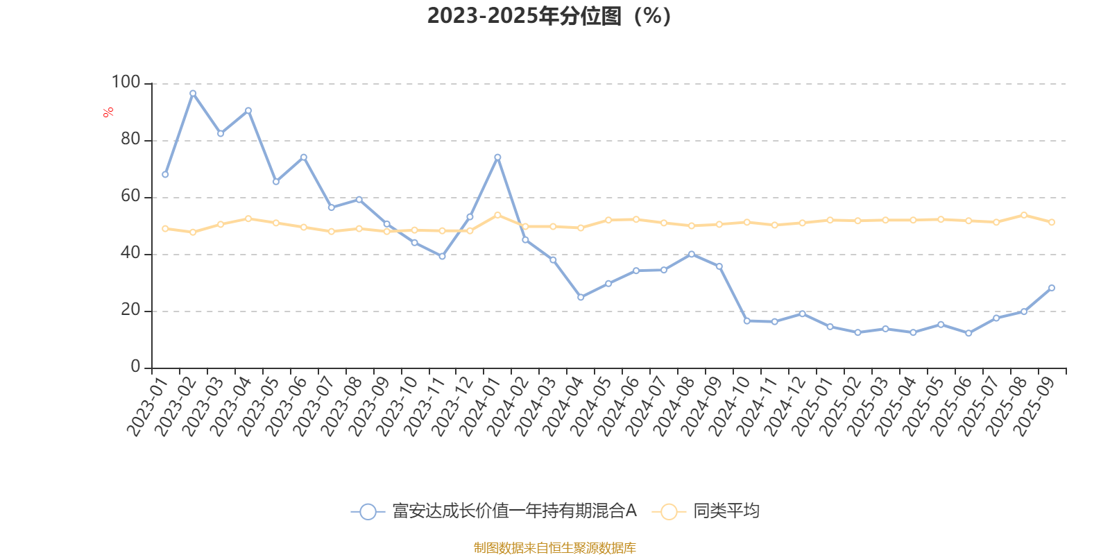 通过所选区间该基金净值增长率分位图,可以观察该基金与同类基金业绩比较情况。图为坐标原点到区间内某时点的净值增长率在同类基金中的分位数。
