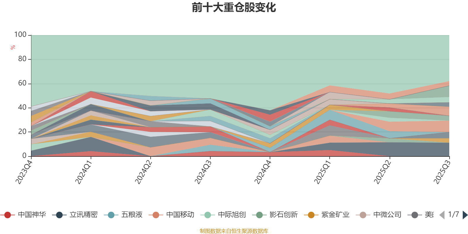 截至2025年三季度末,基金十大重仓股分别是立讯精密、宁德时代、亿纬锂能、比亚迪、贵州茅台、中国平安、招商银行、海澜之家、紫金矿业、歌尔股份。
