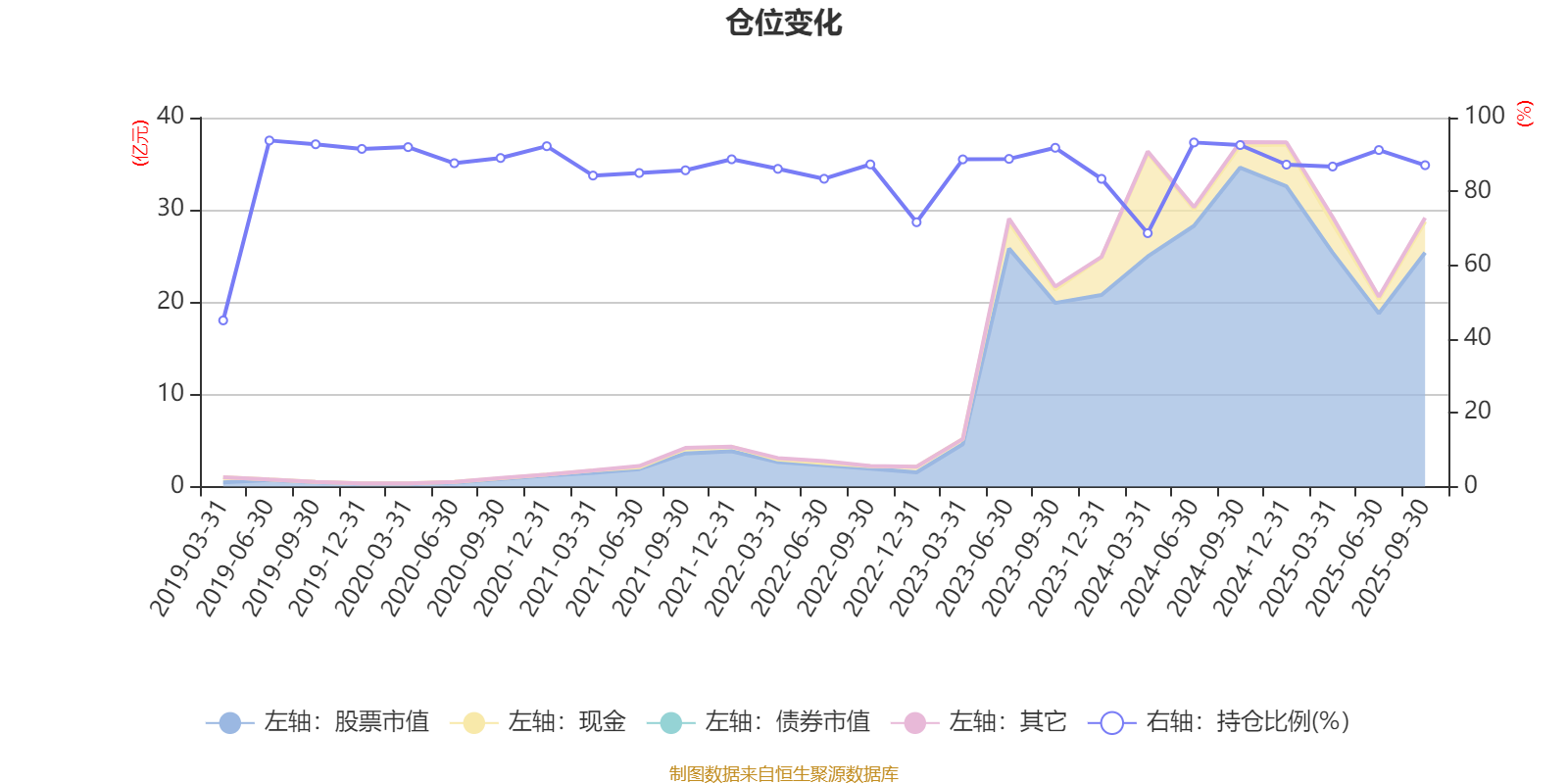 基金管理人在三季报中表示,配置方面,我们认为四季度适度降低仓位和保持灵活性会更重要。长期我们依然看好以 AI 和创新药为代表的长周期产业趋势方向;风格上认为中证 800 相对上证 50 和小微盘指数的优势会在四季度有所回落;对于顺周期品种我们继续保持审慎,无论是严肃消费还是国内定价的周期品都不会有太多基本面支持的投资机会。