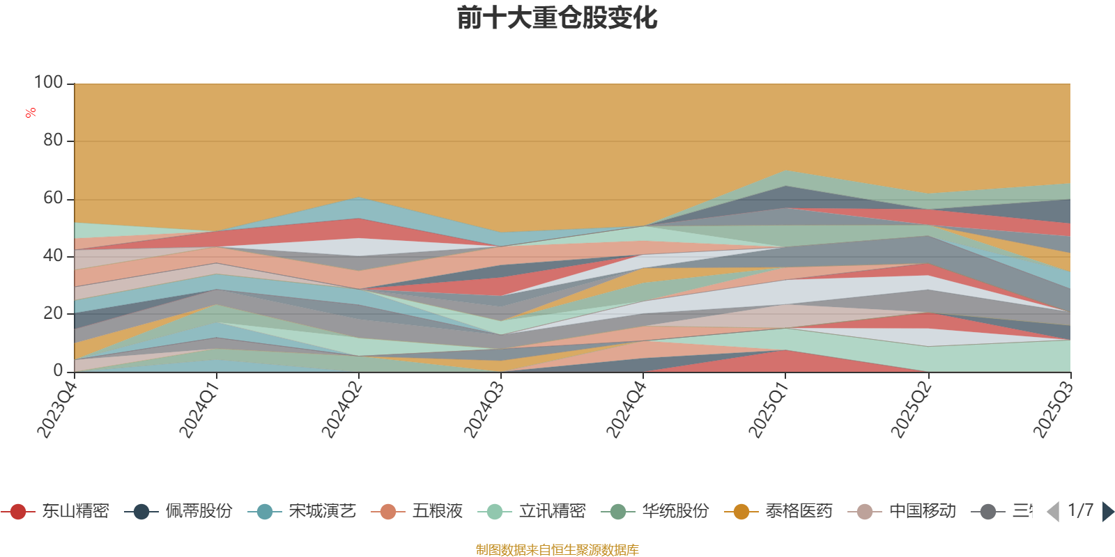 截至2025年三季度末,基金十大重仓股分别是立讯精密、蓝思科技、比亚迪、亿纬锂能、歌尔股份、东鹏饮料、海澜之家、盐津铺子、贵州茅台、山西汾酒。
