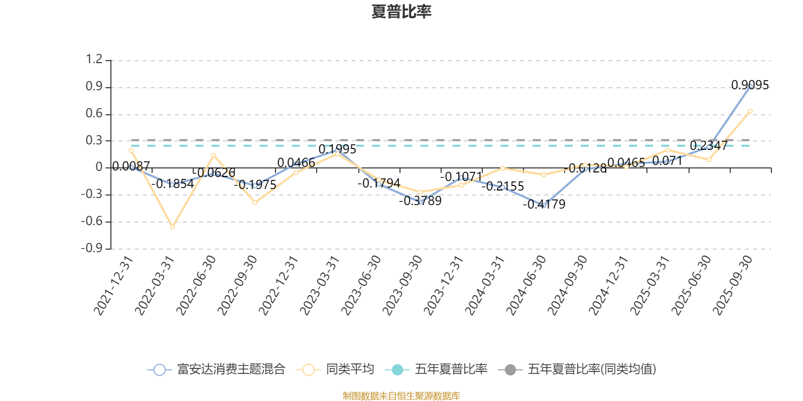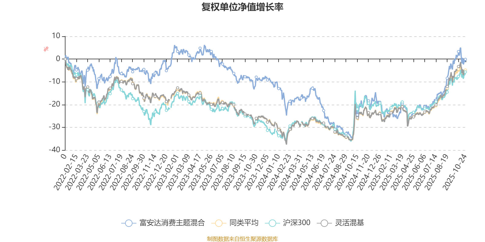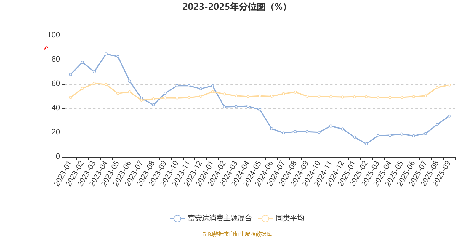 截至10月24日,富安达消费主题混合近三个月复权单位净值增长率为17.28%,位于同类可比基金427/1287;近半年复权单位净值增长率为31.16%,位于同类可比基金418/1287;近一年复权单位净值增长率为26.45%,位于同类可比基金517/1287;近三年复权单位净值增长率为9.83%,位于同类可比基金747/1286。