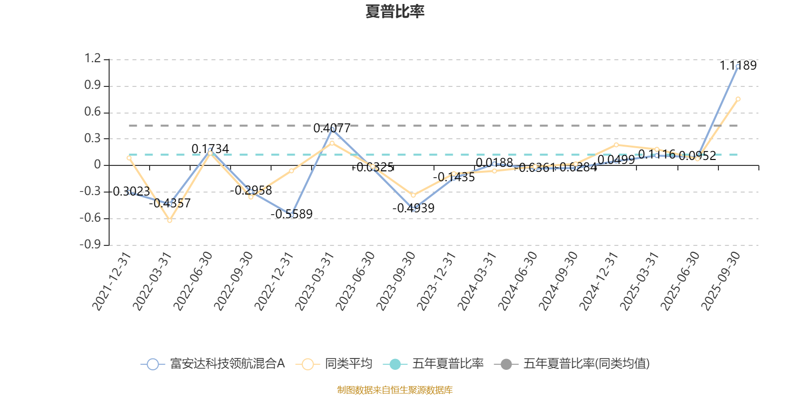 截至9月30日,基金近三年夏普比率为0.4469,位于同类可比基金147/159。