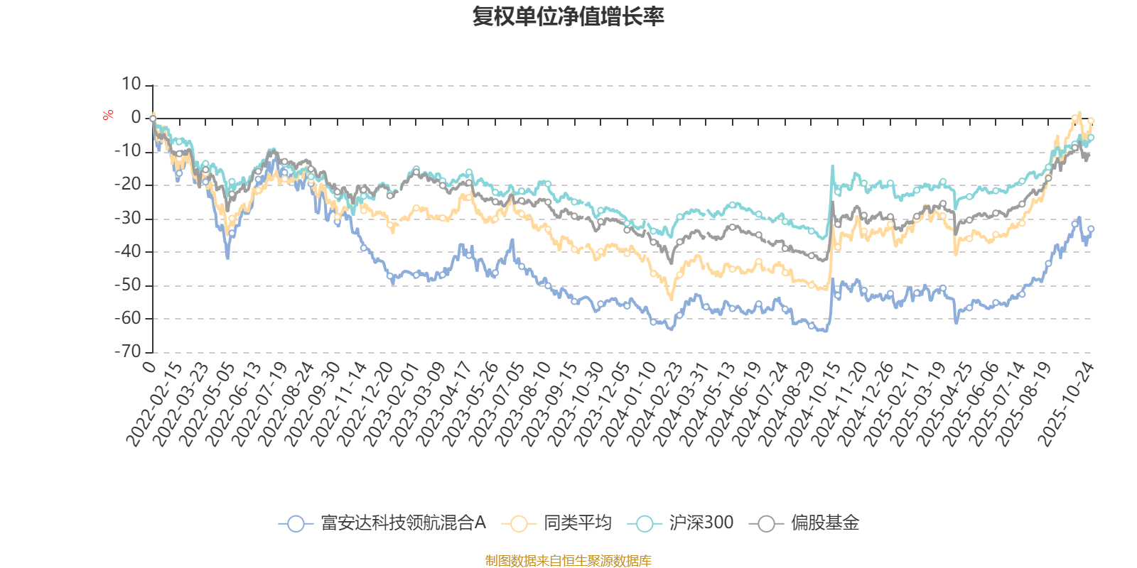 截至10月24日,富安达科技领航混合A近三个月复权单位净值增长率为32.75%,位于同类可比基金121/229;近半年复权单位净值增长率为54.73%,位于同类可比基金99/229;近一年复权单位净值增长率为33.09%,位于同类可比基金180/213;近三年复权单位净值增长率为-5.74%,位于同类可比基金153/158。