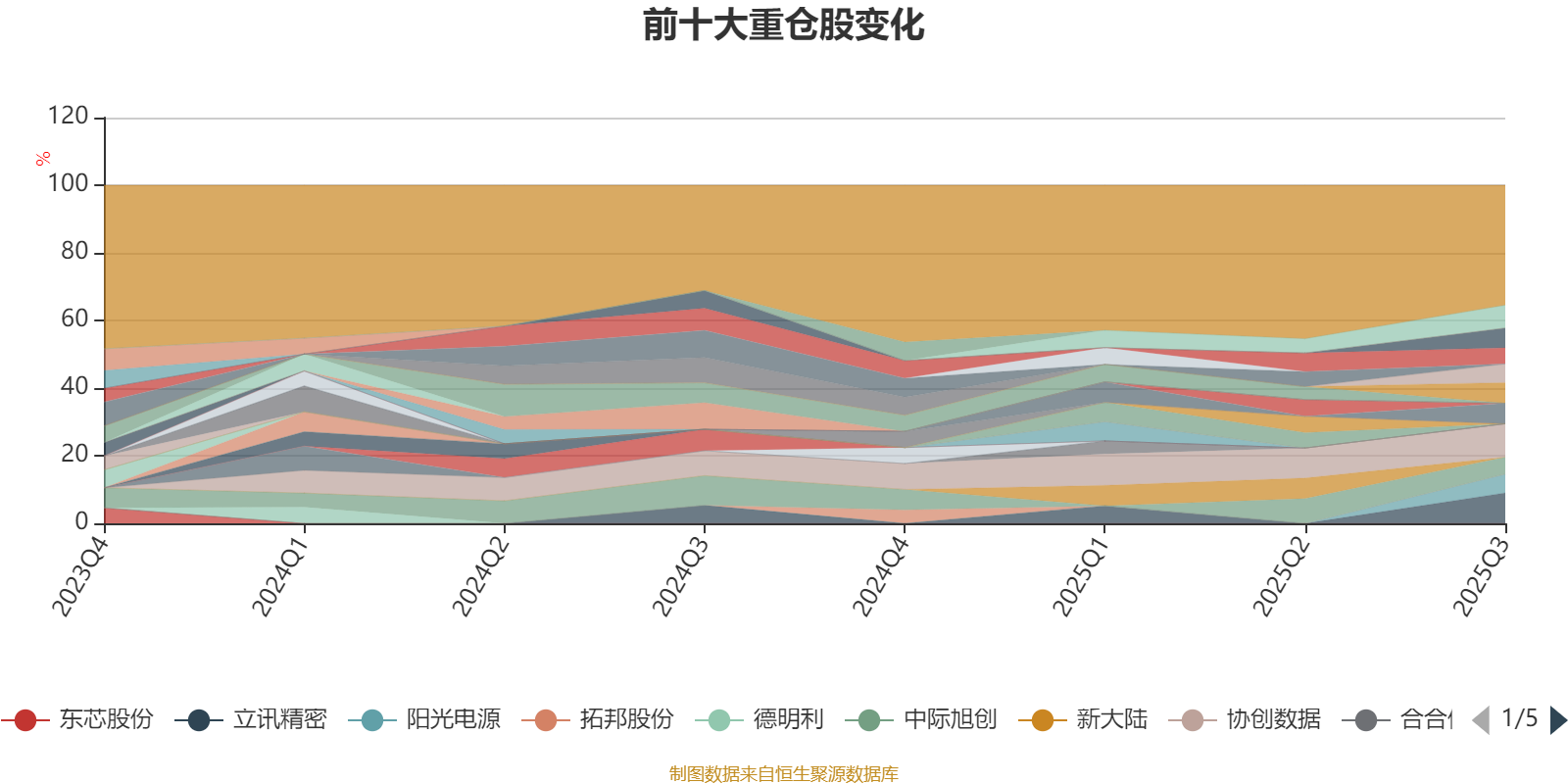 该基金持股集中度较高。截至2025年三季度末,基金十大重仓股分别是协创数据、立讯精密、乐鑫科技、亿纬锂能、恒玄科技、蓝思科技、阳光电源、欣旺达、中际旭创、新易盛。