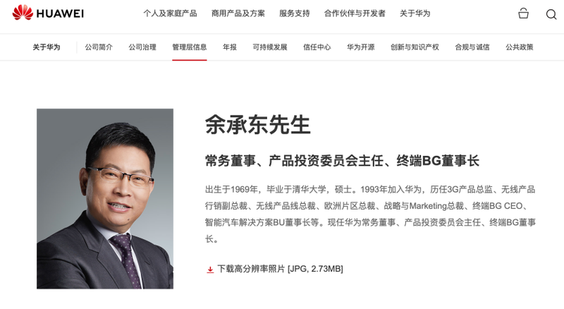 新京报贝壳财经讯(记者韦博雅)10月26日,新京报贝壳财经记者注意到,华为官网更新了余承东职位信息。余承东增任产品投资委员会主任。同时,余承东仍然担任华为常务董事、终端BG董事长。