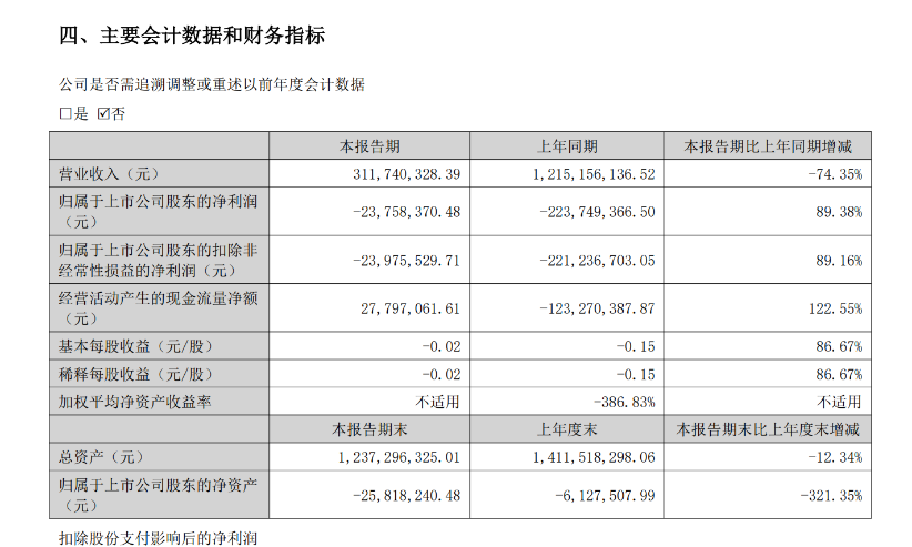 业绩方面,2025年中报显示,*ST宝鹰实现收入3.12亿元,同比下降74.35%;归母净利润-2376万元。报告期公司亏损主要系市场竞争激烈、营业收入下降、计提固定资产折旧、发生融资贷款利息费用等综合因素所致。