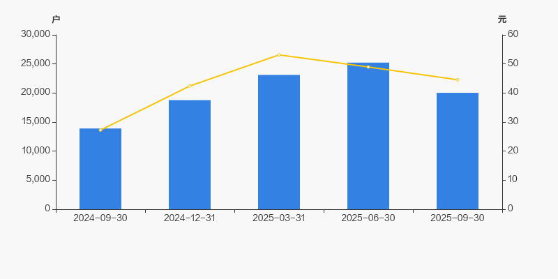 2024年9月30日至今,公司股东户数显著增长,区间涨幅为44.17%。2024年9月30日至2025年9月30日区间股价上涨63.55%。