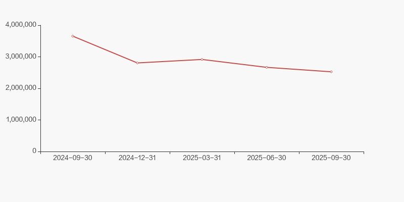 2024年9月30日至今,公司股东户数有所增长,区间涨幅为3.34%。2024年9月30日至2025年9月30日区间股价下降17.84%。