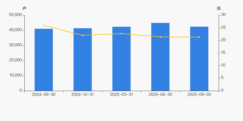 截至2025年9月30日,公司最新总股本为4.68亿股,其中流通股本为4.3亿股。户均持有流通股数量由上期的9591股上升至1.02万股,户均流通市值21.63万元。