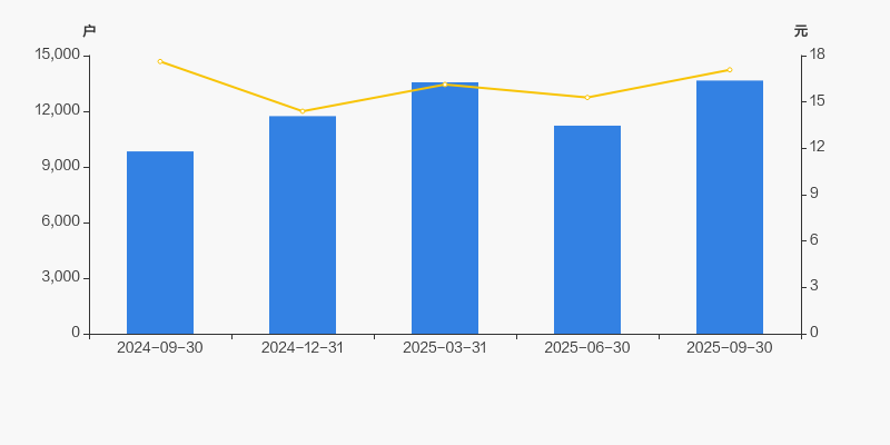 截至2025年9月30日,公司最新总股本为1.86亿股,其中流通股本为1.48亿股。户均持有流通股数量由上期的1.31万股下降至1.08万股,户均流通市值18.46万元。