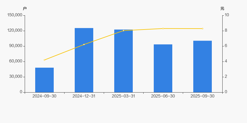 2024年9月30日至今,公司股东户数成倍增长,区间涨幅达109.53%。2024年9月30日至2025年9月30日区间股价上涨97.14%。