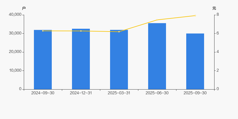 2024年9月30日至今,公司股东户数有所下降,区间跌幅为6.01%。2024年9月30日至2025年9月30日区间股价上涨26.11%。
