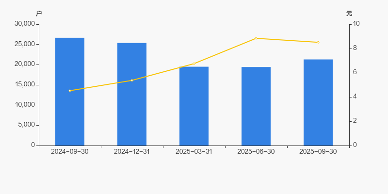 2024年9月30日至今,公司股东户数显著下降,区间跌幅为20.10%。2024年9月30日至2025年9月30日区间股价上涨88.27%。