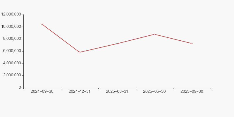 截至2025年9月30日,公司最新流通股本为9.66亿股。户均持有流通股数量由上期的2.45万股上升至2.53万股,户均流通市值64.61万元。