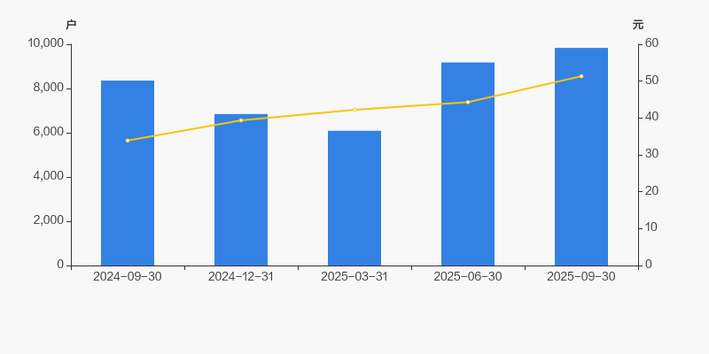 2024年9月30日至今,公司股东户数显著增长,区间涨幅为17.67%。2024年9月30日至2025年9月30日区间股价上涨51.48%。