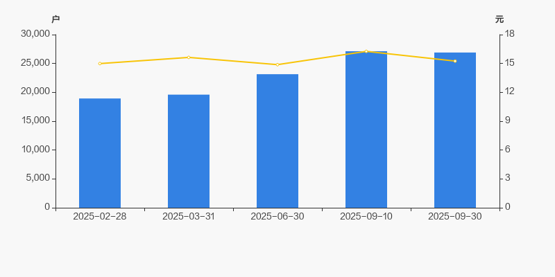 2025年2月28日至今,公司股东户数显著增长,区间涨幅为42.06%。2025年2月28日至2025年9月30日区间股价上涨1.76%。