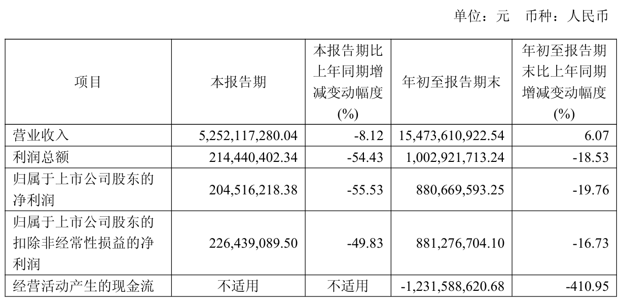 新能源业务承压,博威合金前三季度净利下滑近两成,经营性现金流净额暴跌411%