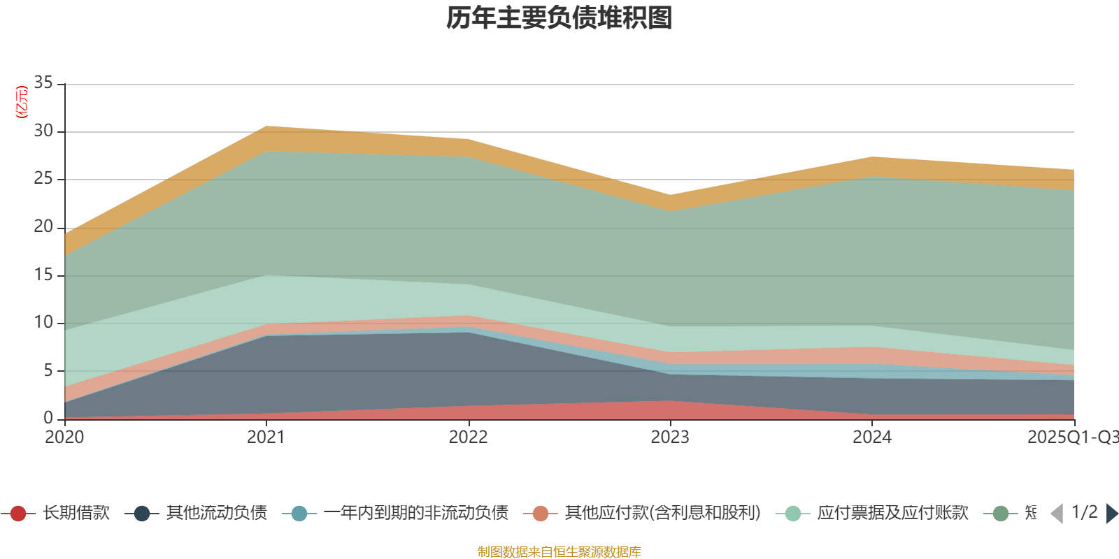 负债重大变化方面,截至2025年三季度末,公司短期借款较上年末增加6.85%,占公司总资产比重上升2.65个百分点;一年内到期的非流动负债较上年末减少64.78%,占公司总资产比重下降1.69个百分点;其他应付款(含利息和股利)较上年末减少40.08%,占公司总资产比重下降1.19个百分点;应付票据及应付账款较上年末减少28.53%,占公司总资产比重下降1.01个百分点。