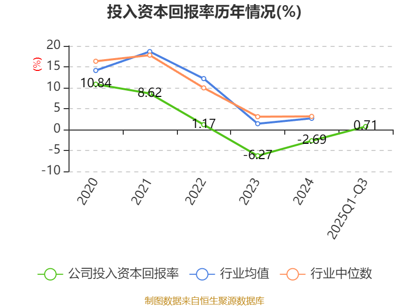 盈利能力方面, 2025年前三季度公司加权平均净资产收益率为-0.24%,同比上升4.41个百分点。公司2025年前三季度投入资本回报率为0.71%,较上年同期上升3.26个百分点。