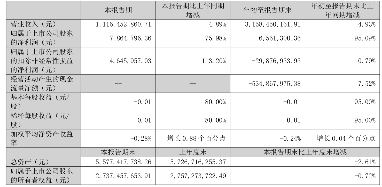 奥克股份:2025年前三季度净利润同比减亏1.27亿元