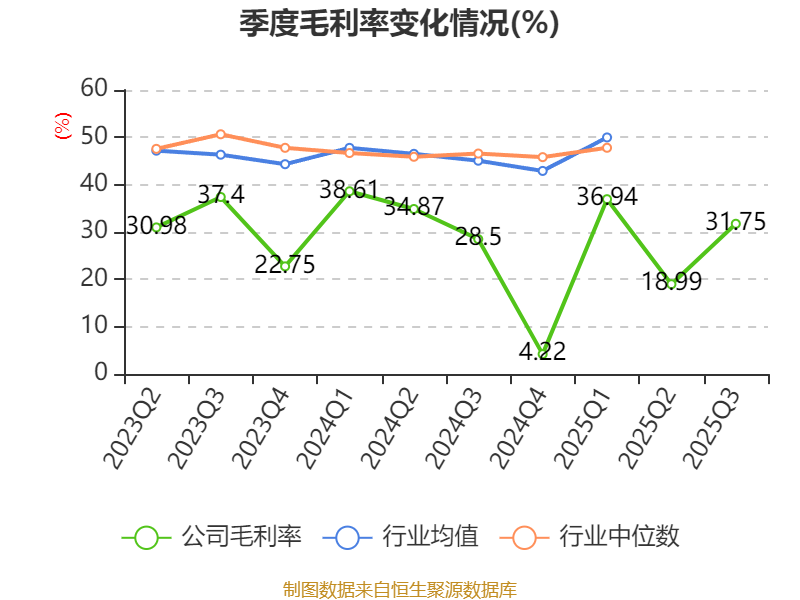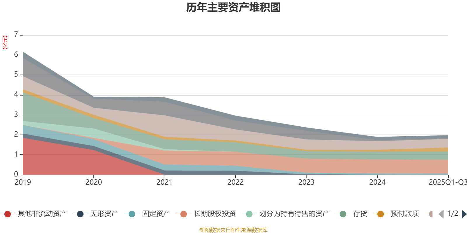 资产重大变化方面,截至2025年三季度末,公司预付款项较上年末增加113.31%,占公司总资产比重上升5.33个百分点;长期股权投资较上年末减少1.34%,占公司总资产比重下降2.15个百分点;货币资金较上年末减少38.29%,占公司总资产比重下降1.09个百分点;应收票据及应收账款较上年末减少0.11%,占公司总资产比重下降1.06个百分点。