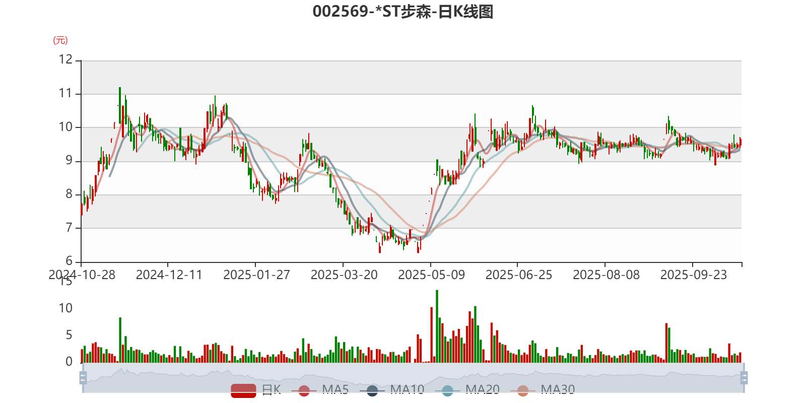 中证智能财讯 *ST步森(002569)10月27日披露2025年第三季度报告。前三季度公司实现营业总收入8898.98万元,同比下降12.49%;归母净利润亏损566.48万元,上年同期亏损1291.89万元;扣非净利润亏损462.82万元,上年同期亏损1180.18万元;经营活动产生的现金流量净额为-2272.07万元,上年同期为-1496.61万元;报告期内,*ST步森基本每股收益为-0.0393元,加权平均净资产收益率为-17.90%。