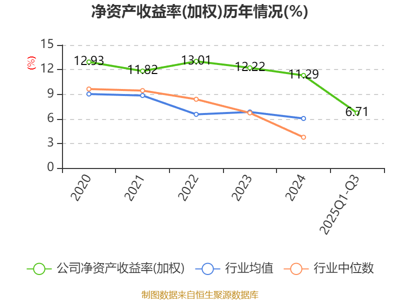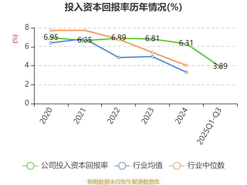 盈利能力方面, 2025年前三季度公司加权平均净资产收益率为6.71%,同比下降1.76个百分点。公司2025年前三季度投入资本回报率为3.89%,较上年同期下降0.77个百分点。