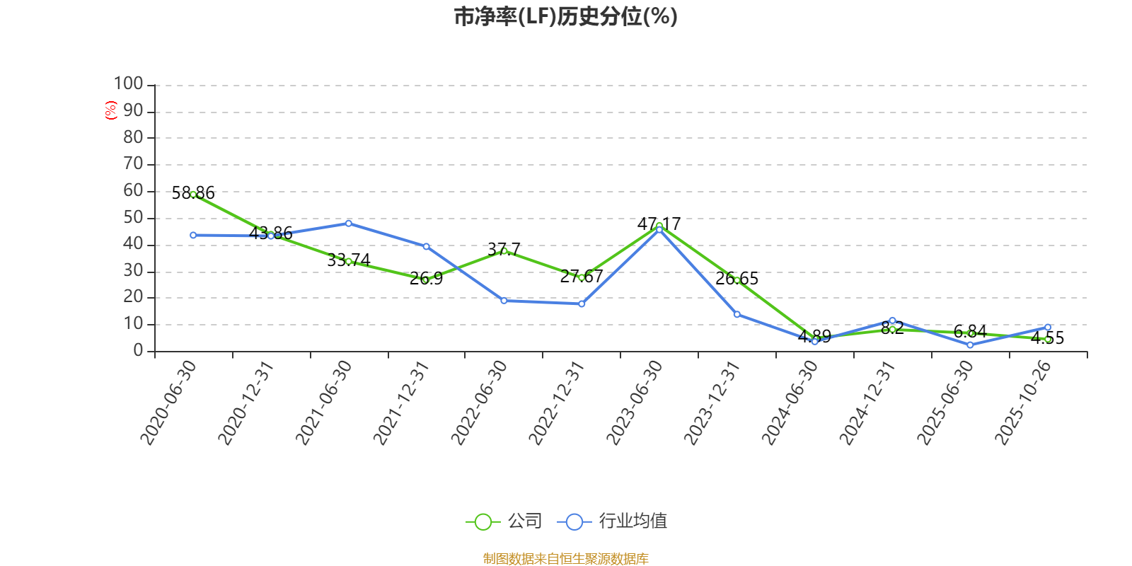 市盈率、市净率为负时,不显示当期分位数,会导致折线图中断。