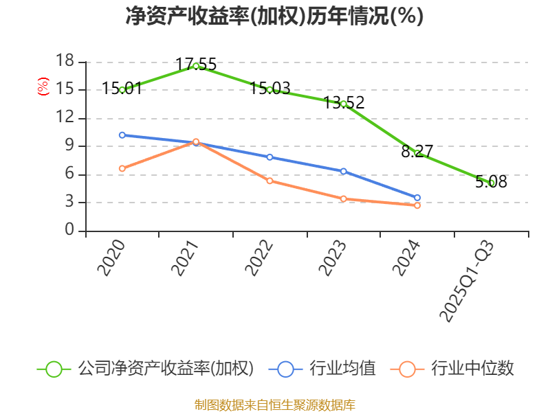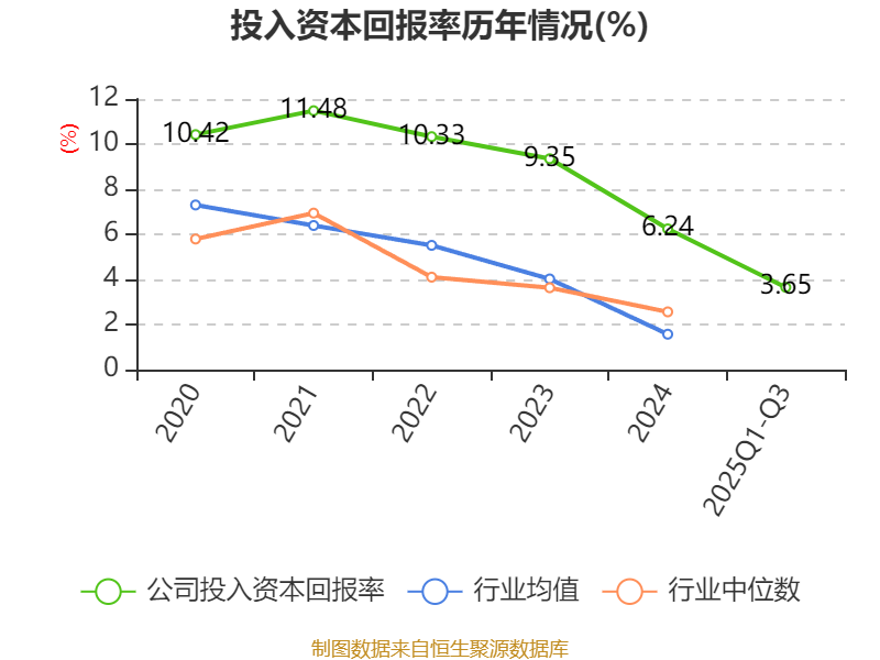 盈利能力方面, 2025年前三季度公司加权平均净资产收益率为5.08%,同比下降1.94个百分点。公司2025年前三季度投入资本回报率为3.65%,较上年同期下降1.34个百分点。